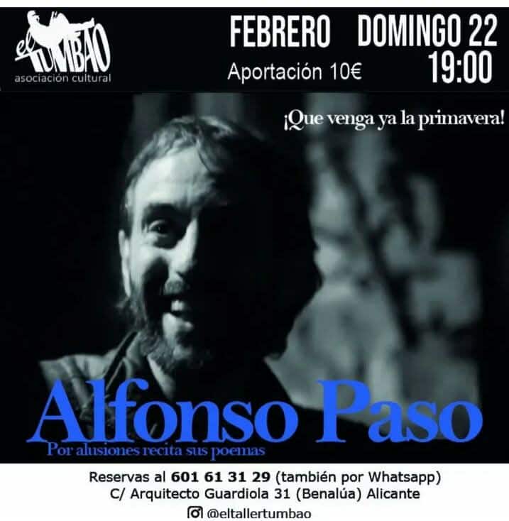 Alfonso Paso, por alusionesDía: 22 de febrero, domingoHora: 19.00hLugar: El Taller Tumbao (Alicante)