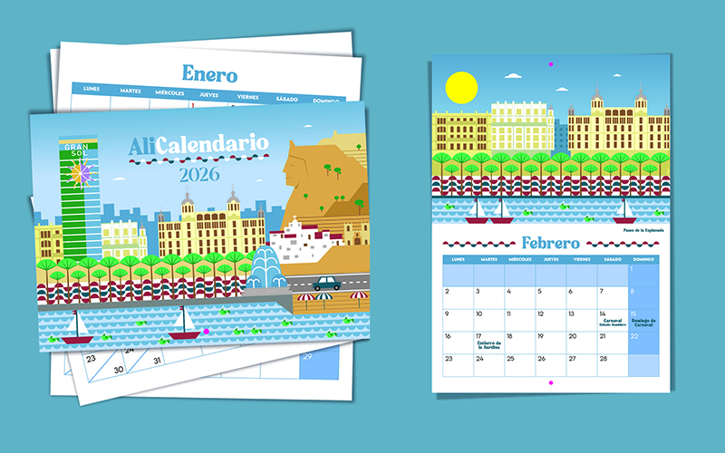 El caso es que hacía tiempo que andaba pensando que todas las ilustraciones se merecían un formato que las mostrara y conjuntamente. Y es ahí cuando apareció Elena Vidal, mucho más conocida por su cuenta de Instagram @alicantestreetstyle, y surgió la idea de hacer un calendario, el ALICalendario 2026.