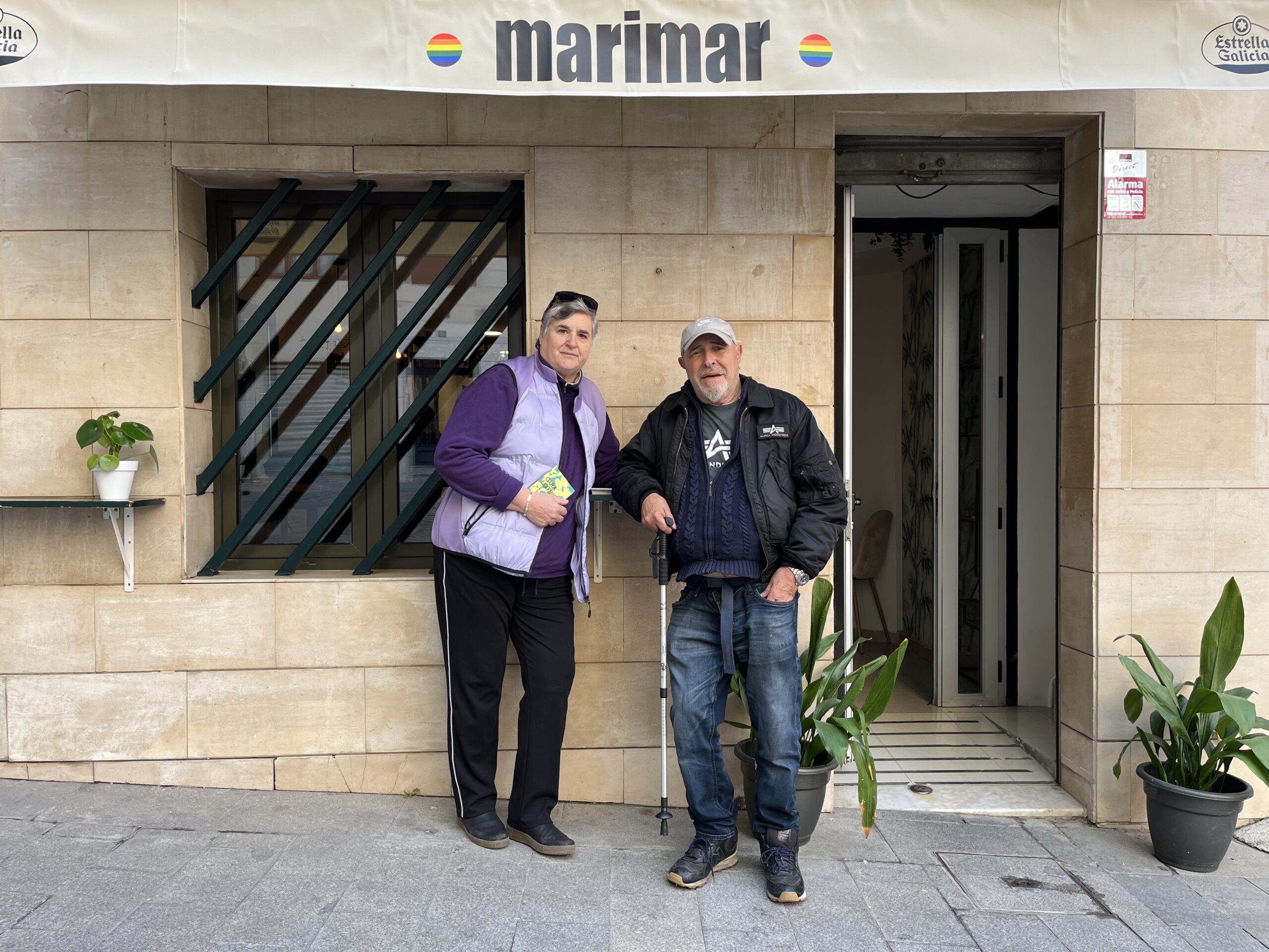 Lena de la asociación de lesbianas Les+55 y Kike Poveda en la puerta del restaurante / Iñigo Lanz