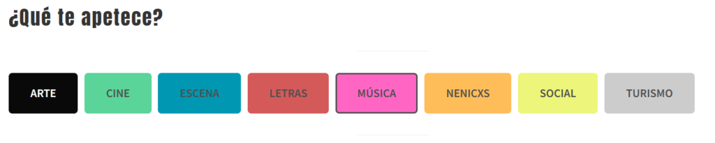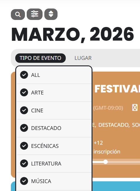 Así de simple. Pulsas el botón que te apetezca y listo: puedes ver solo los eventos del Alacantí, por ejemplo, o quedarte únicamente con conciertos si lo que te apetece es música.
