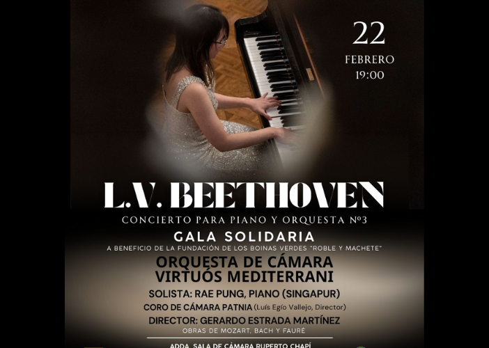 El próximo 22 de febrero a las 19:00 horas, la Sala de Cámara del ADDA acogerá un Concierto Solidario organizado por la Fundación de las Boinas Verdes «Roble y Machete», en colaboración con la orquesta anfitriona. La cita combina repertorio sinfónico de primer nivel con un objetivo benéfico, en una velada que sitúa a Beethoven en el centro del programa.