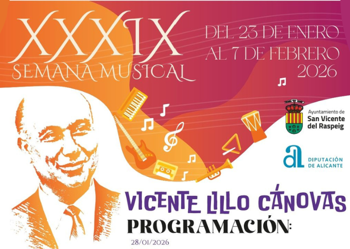 San Vicente del Raspeig celebrará del 23 de enero al 7 de febrero una nueva edición de la Semana Musical Vicente Lillo Cánovas, que alcanza su trigésimo novena edición con una programación más amplia, variada y novedosa. El ciclo se consolida como una de las citas culturales destacadas de la Costa Blanca y será presentado […]