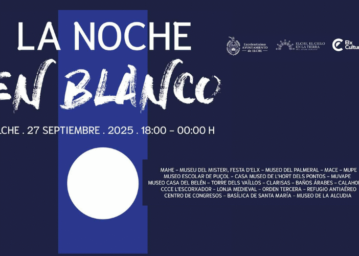 Elche celebrará el próximo sábado 27 de septiembre la segunda edición de la Noche en Blanco, un evento que convertirá museos, salas y rincones emblemáticos en escenarios de cultura y creatividad entre las 18:00 y las 00:00 horas. La cita, enmarcada en el Día Internacional del Turismo, propone visitas gratuitas, talleres, cine, conciertos y exposiciones […]