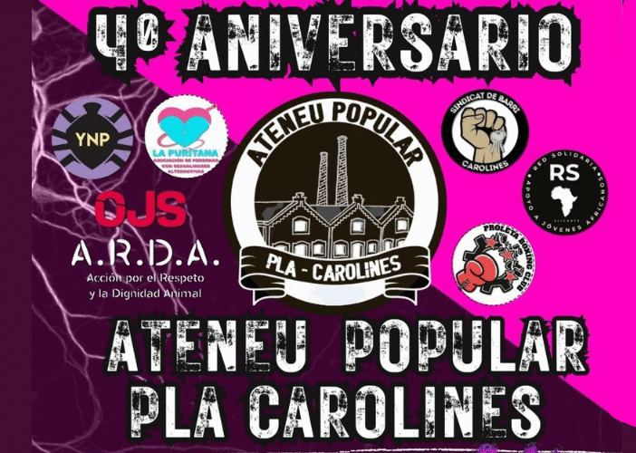 El próximo viernes 3 de octubre, la Sala Cultural 8 y medio de Alicante será el escenario de una cita cargada de música, compromiso y resistencia. El Ateneu Popular Pla Carolines, espacio comunal anticapitalista que desde hace cuatro años impulsa proyectos de autonomía y autogestión en la ciudad, conmemorará su aniversario con una velada en […]