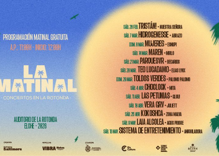 Nace La Matinal, un ciclo gratuito de conciertos que llenará de música las mañanas de los sábados en el Auditorio de la Rotonda hasta mediados de mayo. Trece fechas. Más de 10.000 asistentes previstos. Un escenario privilegiado en el corazón del Palmeral, Patrimonio de la Humanidad. Y una idea sencilla pero poderosa: la cultura también puede disfrutarse con luz natural.