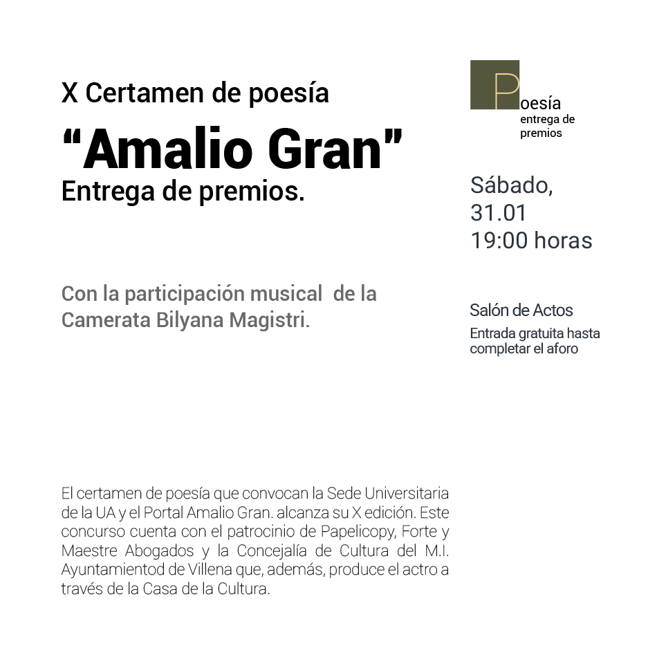 X Certamen de poesía Amalio GranDía: 31 de enero, sábadoHora: 19.00hLugar: