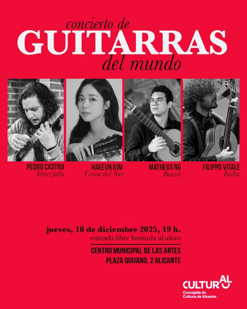 Concierto de guitarras del mundo, el jueves 18 de diciembre a las 19 horas en el Centro municipal de las Artes.