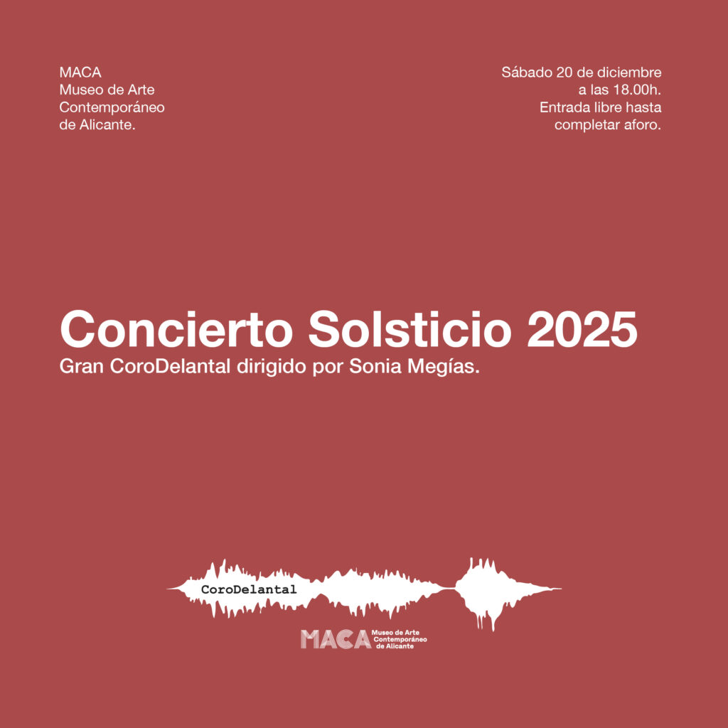 CONCIERTO SOLSTICIO 2025Sábado 20 de diciembre a las 18 horas. Entrada libre.Concierto del Corodelantal dirigido por Sonia Megías.Coordina: Sonia Megías
