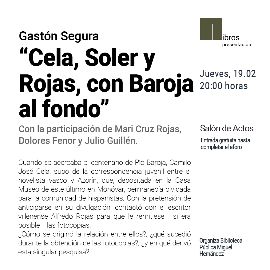 Cela, Soler y Rojas con Baroja de fondoDía: 19 de febrero, juevesHora: 20.00h