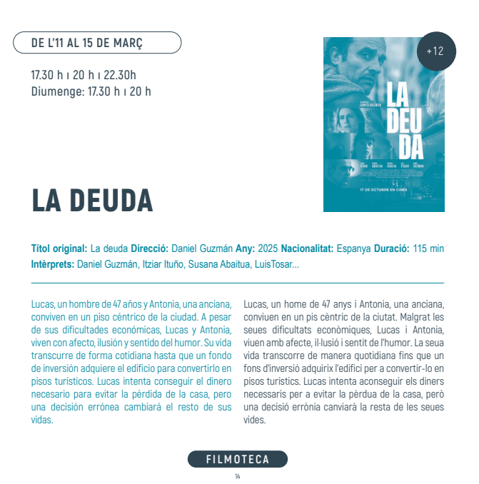 Soy Nevenka,d'Icíar Bollaín (2024) Centre CulturalDimarts 3 de març - 19 hPresentació a càrrec d'Israel Gil Pérez, coordinador de l'Aula de Cine i Audiovisual de la Universitat d'Alacant.Entrada lliure