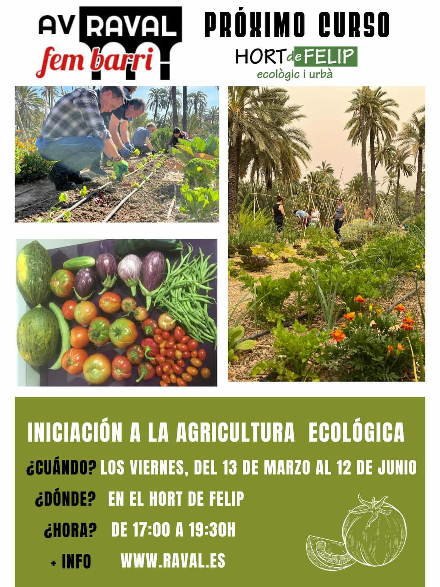 Todos los viernes, de 17.00h a 20.00h, curso de iniciación a la agricultura ecológica en el Hort de Felip (Elche)