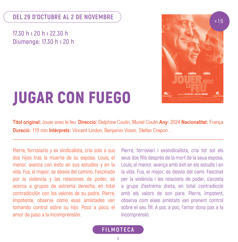 Jugar con fuego Del 29 de octubre al 02 de noviembre Sesiones. 17.30h, 20.30h y 22,30h