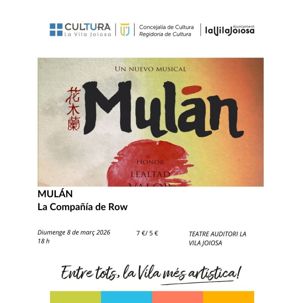 MulánDía: 08 de marzo, domingoHora: 18.00hLugar: Auditorio de VIllajoyosaMUSICAL