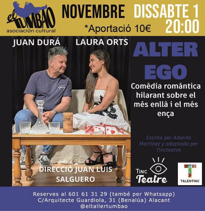 Alter ego Día: 01 de noviembre, sábado Hora: 20.00h Lugar: El Taller Tumbao (Alicante)