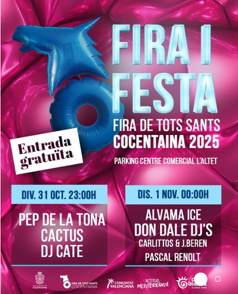 La Fira de Tots Sants de Cocentaina celebra una nueva edición llena de historia, tradición y cultura viva. Del 31 de octubre al 02 de noviembre, las calles del municipio se transforman en un gran escenario donde conviven el arte, la música, el teatro, la magia, la gastronomía y las raíces más profundas del pueblo. Con siglos de historia a sus espaldas —y reconocida como Acontecimiento de Interés Turístico Internacional— la Fira continúa siendo punto de encuentro entre pasado y presente, donde la esencia medieval se une a la creatividad contemporánea.